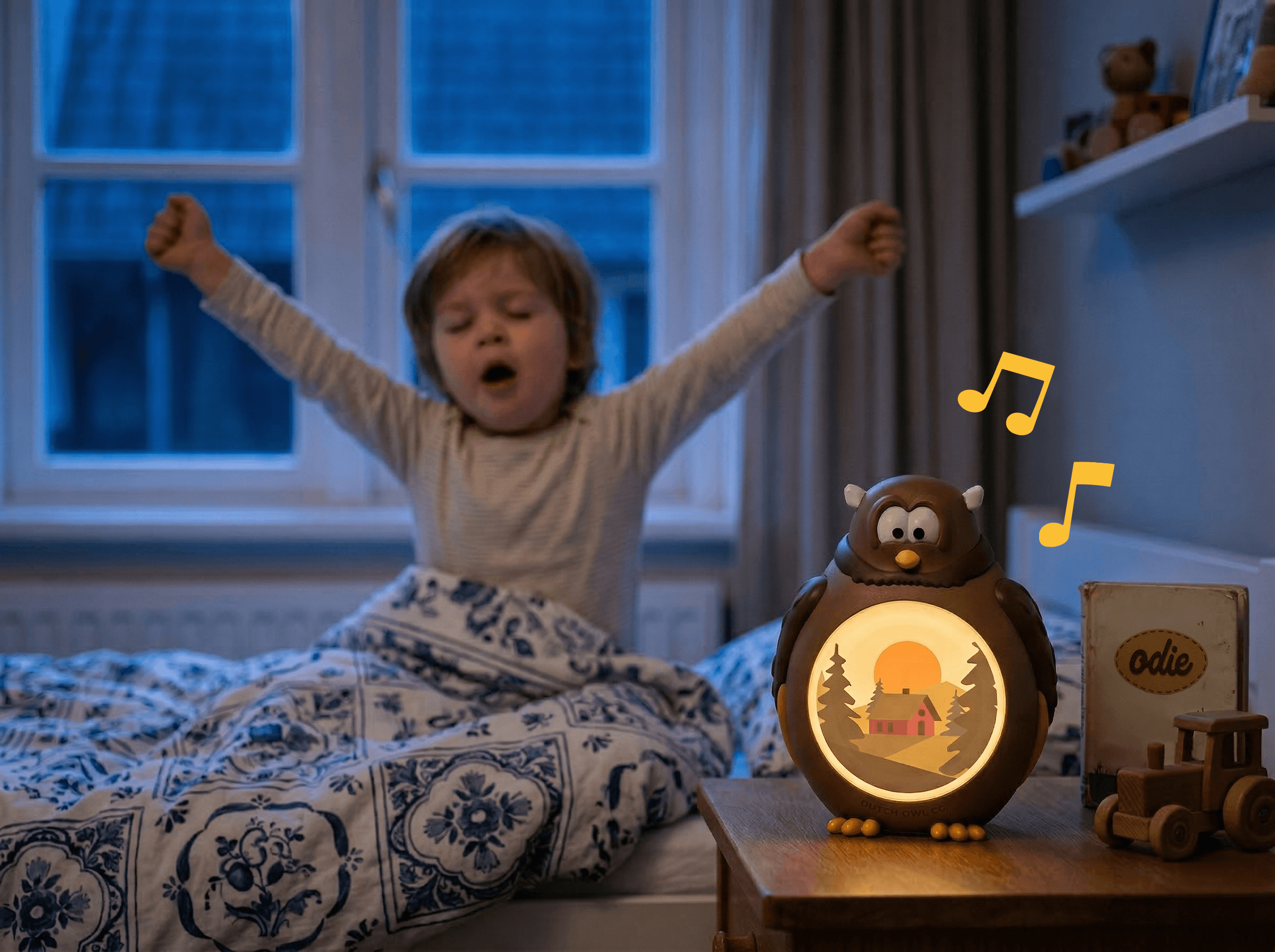 We hebben goed geluisterd naar wat ouders missen bij huidige slaaptrainers. Het resultaat? Een slimme combinatie van features die Odie onmisbaar maken op elk nachtkastje. En extra handig: hij werkt gewoon lekker makkelijk via de app op jullie eigen wifi thuis!